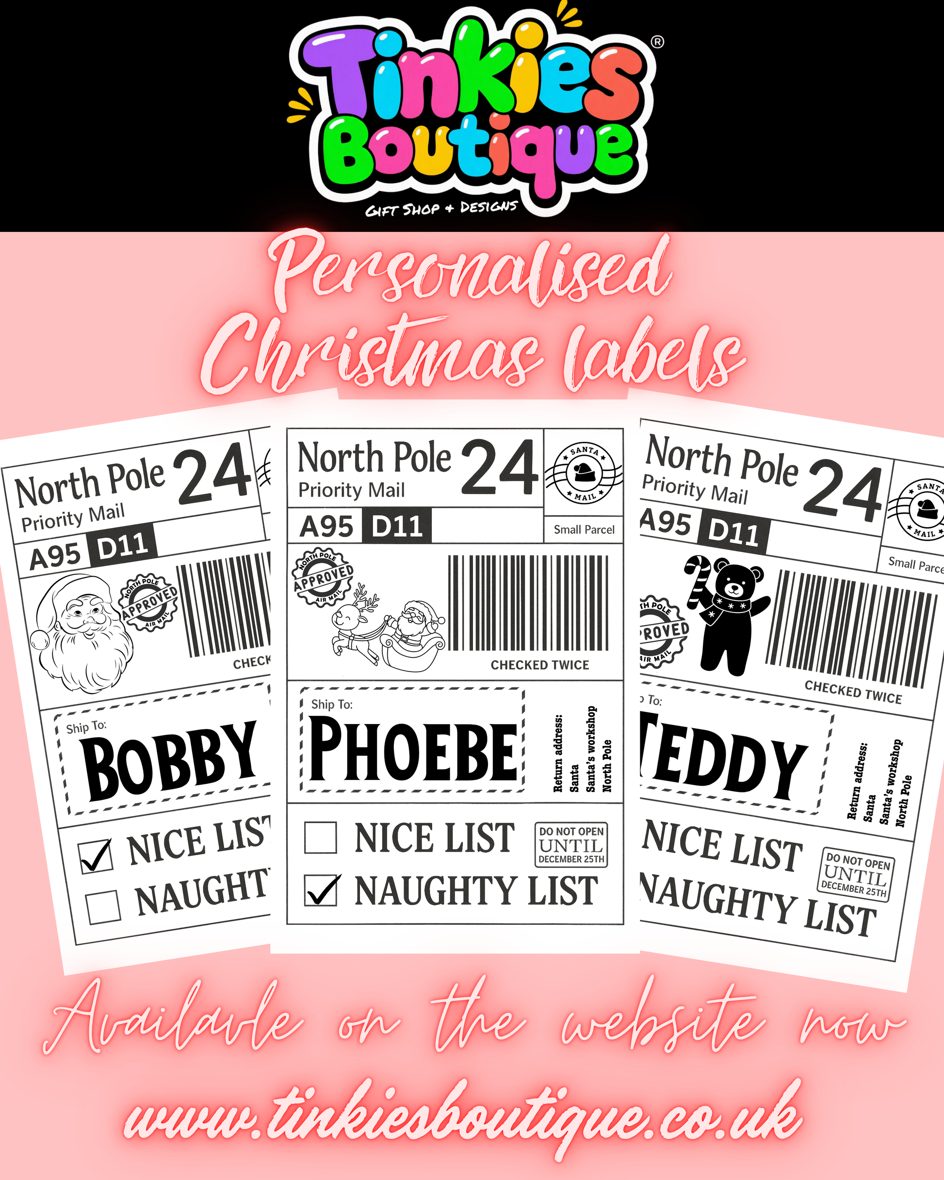 Personalised Santa Sticky Labels, Santa Mail, Santa Postage Labels, North Pole Post